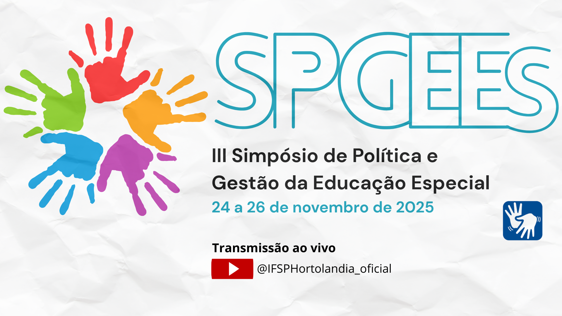 Entre os dias 24 e 26 de novembro de 2025, o Instituto Federal de São Paulo (IFSP) realizará o III Simpósio de Política e Gestão da Educação Especial (SPGEEs), promovido...