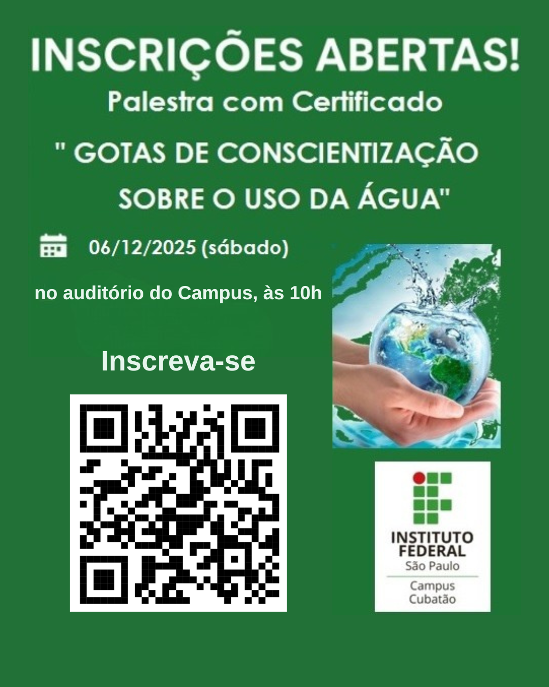 A turma CSA671, da disciplina CBTEXP3 (Extensão 3), do curso de Tecnologia em Automação Industrial do Campus Cubatão, será a responsável pela condução da palestra “Gotas de...