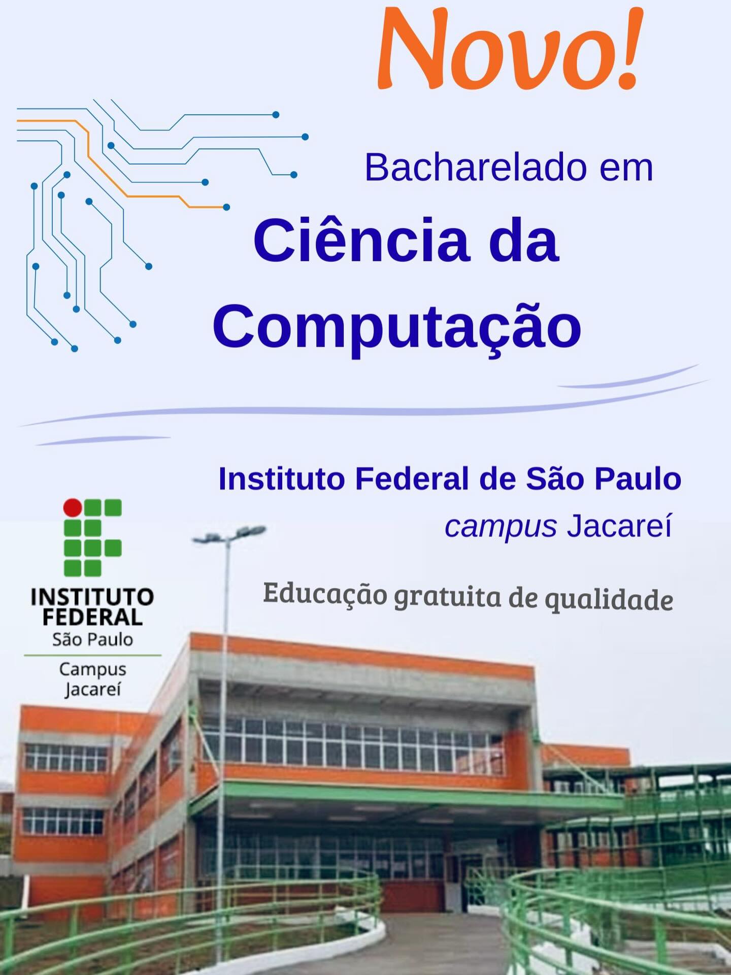 A partir do 1º semestre de 2026 a Campus Jacareí passará o ofertar o Curso de Bacharelado em Ciência da Computação, com 35 vagas anuais.