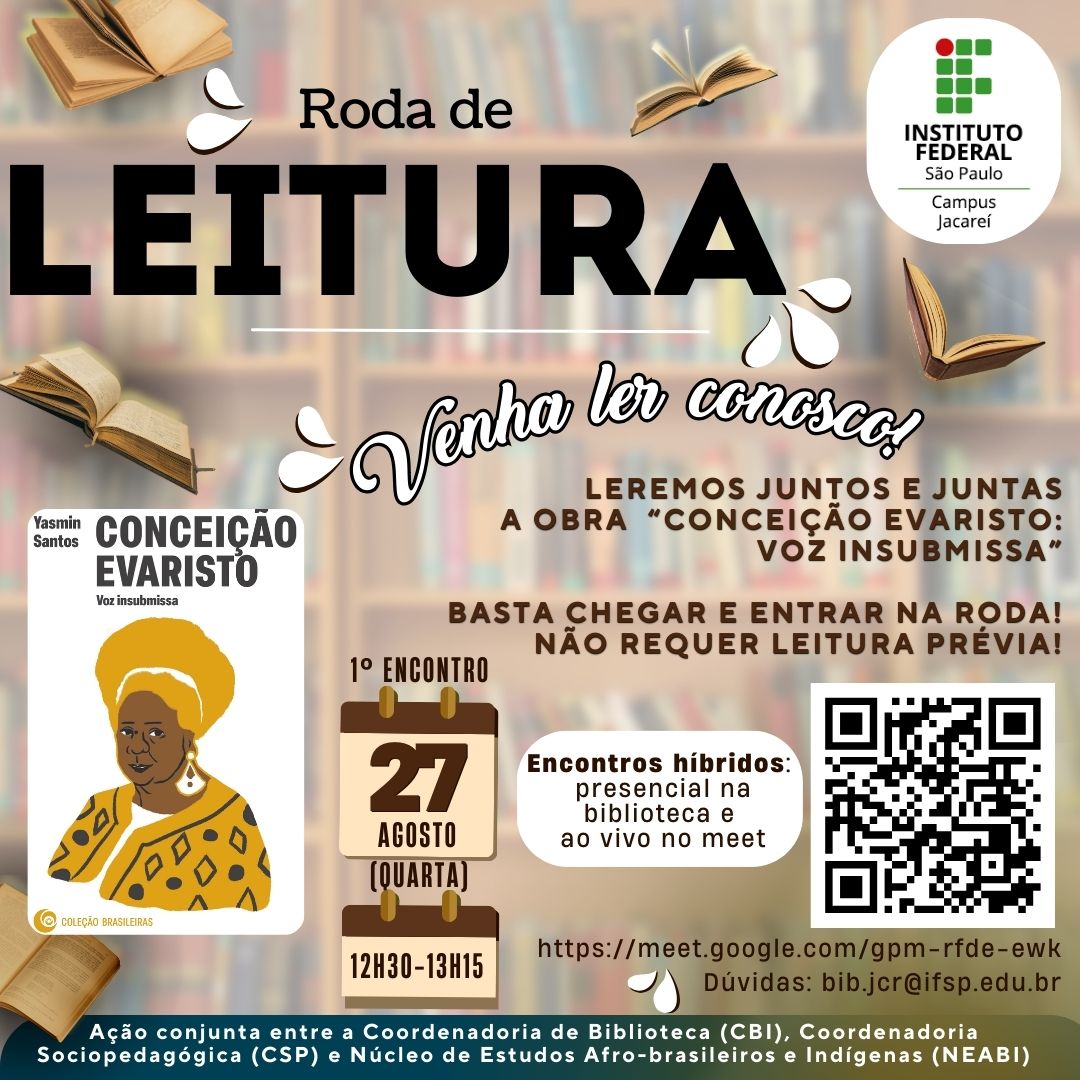A Biblioteca do IFSP – Campus Jacareí convida toda a comunidade para participar da Roda de Leitura sobre a obra Conceição Evaristo: voz insubmissa. Data: 27/08/2025...