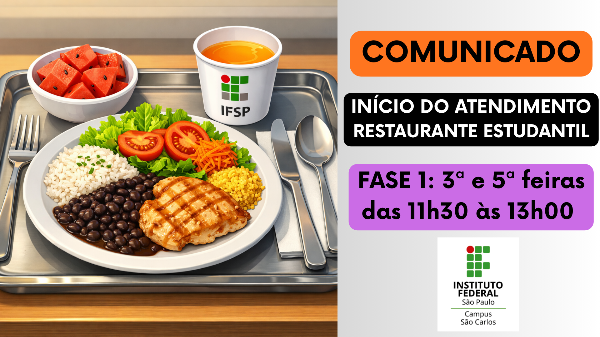 📢 COMUNICADO – INÍCIO DAS VENDAS DO RESTAURANTE ESTUDANTIL IFSP – Campus São Carlos