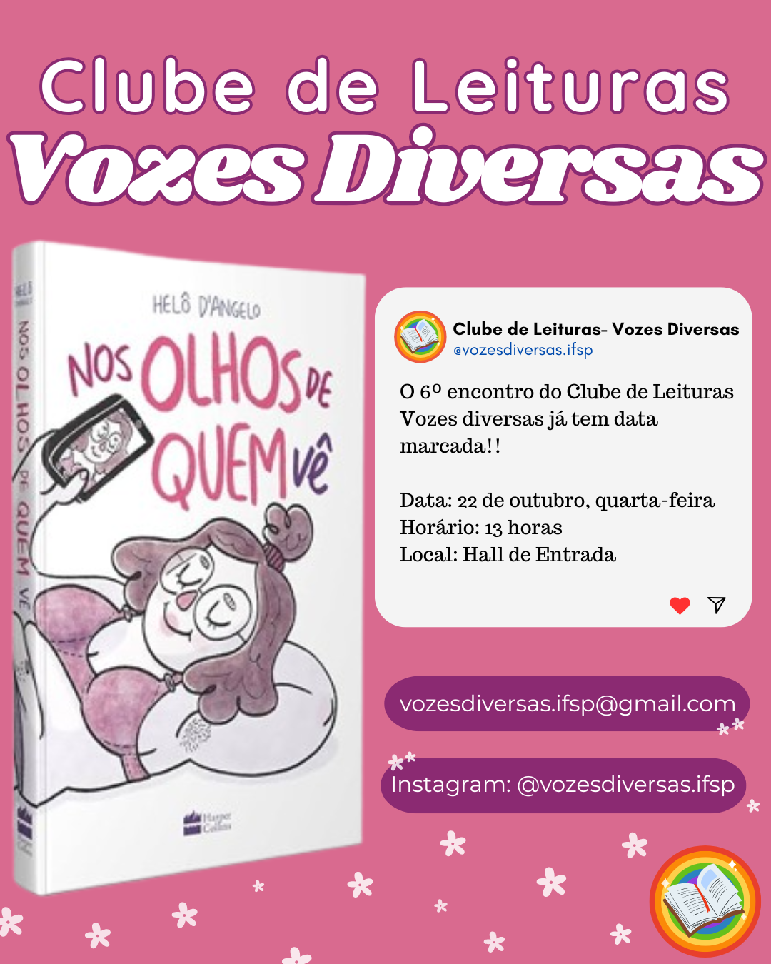O Projeto Vozes Diversas se alegra em anunciar que o 6º Encontro do Clube de Leituras Vozes Diversas já tem data marcada! Desta vez, convidamos você a mergulhar conosco na leitura da...