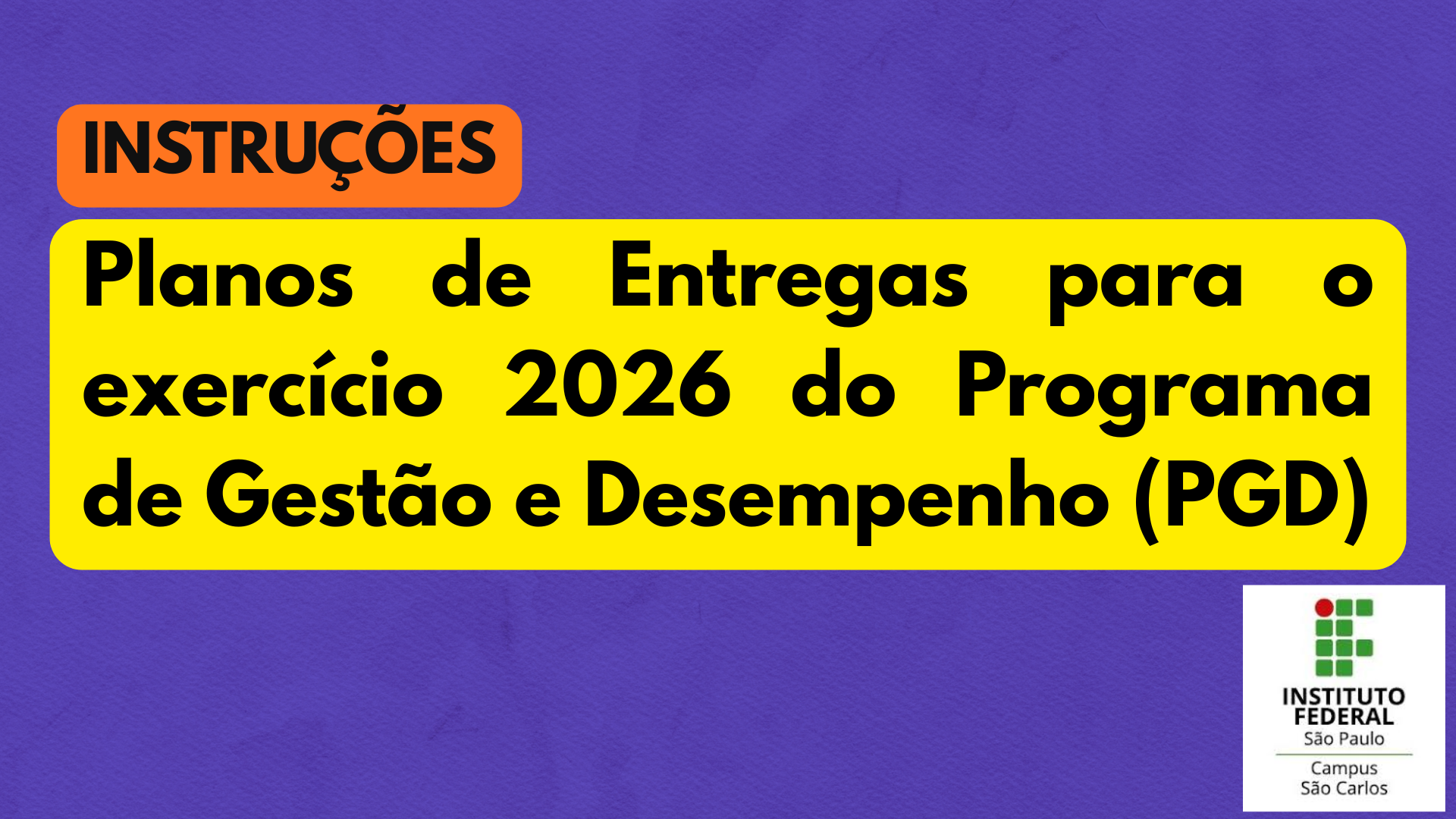 A Diretoria de Gestão de Pessoas (DGP-PRD) e a Diretoria de Desenvolvimento Institucional (DDIPRD), ambas da Pró-Reitoria de Planejamento e Desenvolvimento Institucional (PRO-PRD), informam que, com a aproximação do encerramento do ano de 2025, torna-se essencial que as unidades executoras do Programa de Gestão e Desempenho (PGD) iniciem a elaboração do Plano de Entregas para o exercício...
