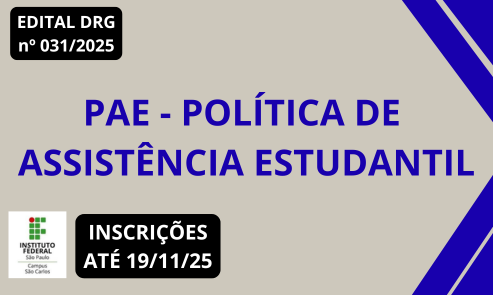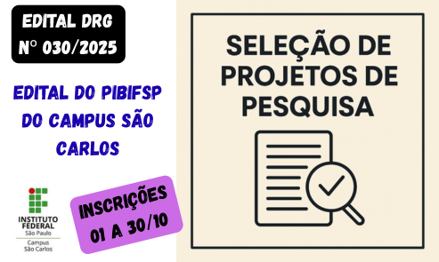 A Diretoria do campus São Carlos do Instituto Federal de Educação, Ciência e Tecnologia de São Paulo (IFSP) torna público o presente Edital de abertura de inscrições, no período de...