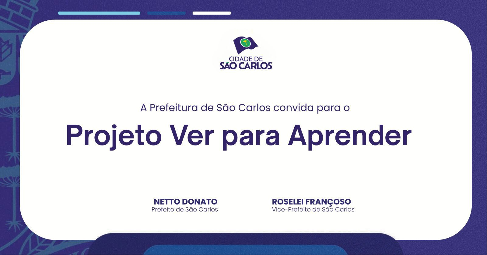 A Prefeitura Municipal de São Carlos, através do Fundo Social de Solidariedade, promove oportunidade de trabalho voluntário para atuação junto ao Projeto de Acuidade Visual - Ver Para Aprender. No link https://www.sympla.com.br/evento/projeto-ver-para-aprender-sao-carlos-sp/3075529 , constam maiores informações sobre o projeto.