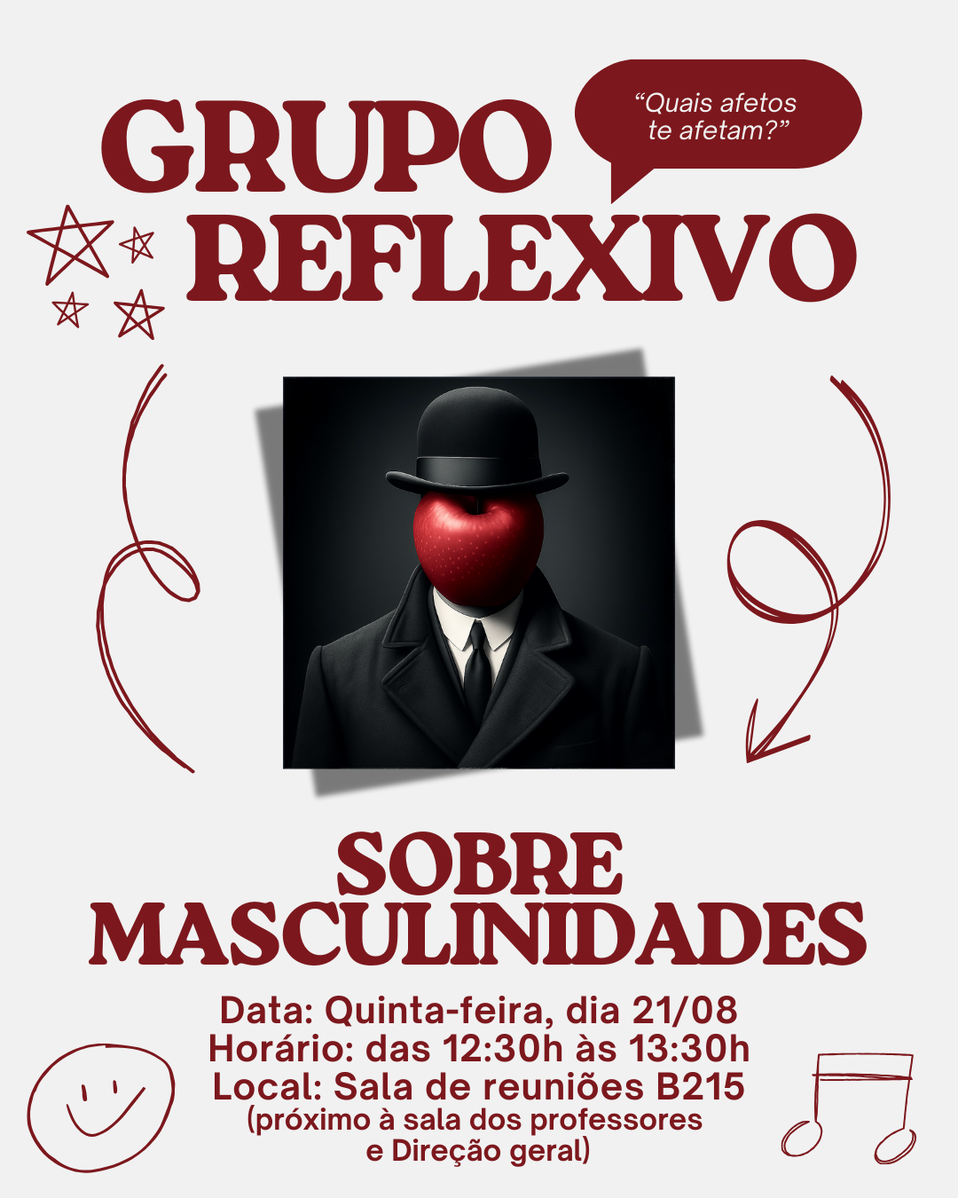 O Grupo Reflexivo de Masculinidades é aberto a toda comunidade acadêmica. Participe e compartilhe suas experiências conosco!