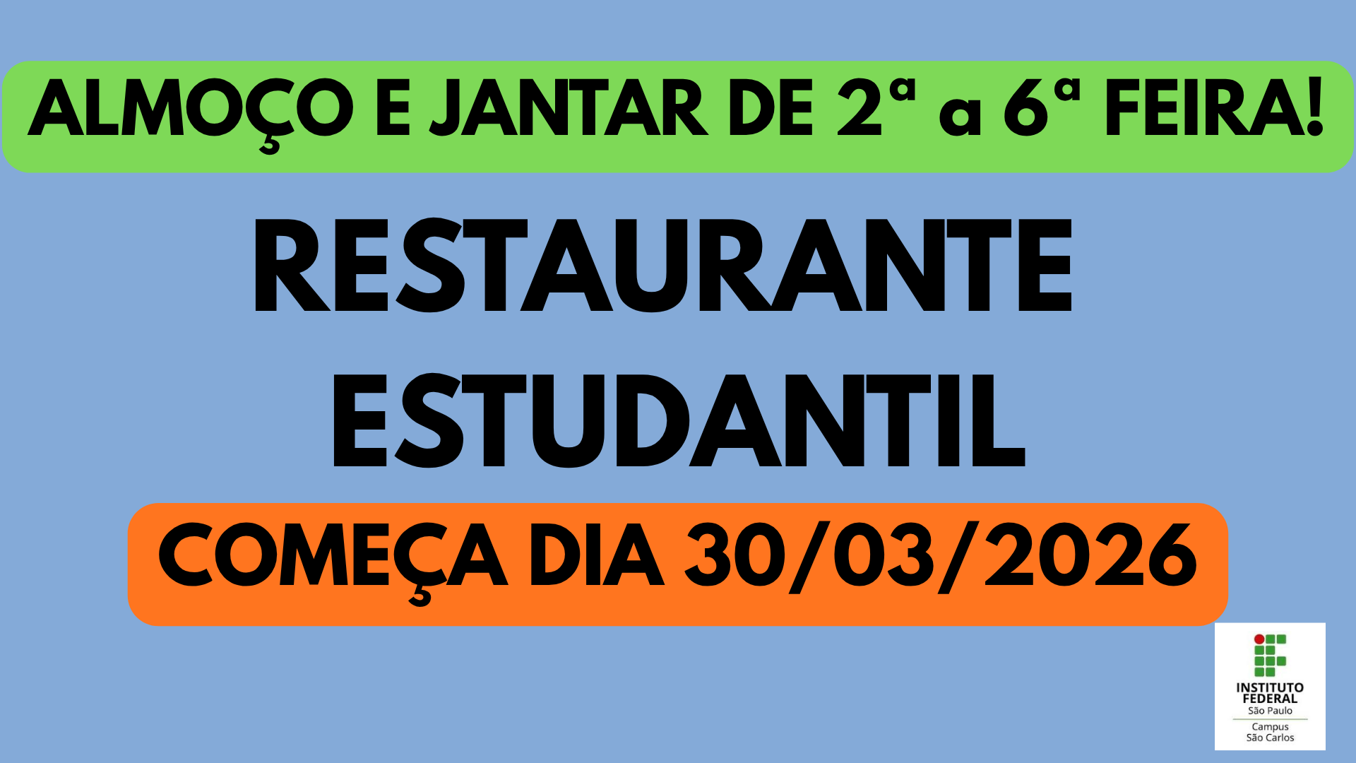 A partir de 2ª feira (30/03/26), Restaurante Estudantil passa a ofertar almoço e jantar de 2ª a 6ª feira!