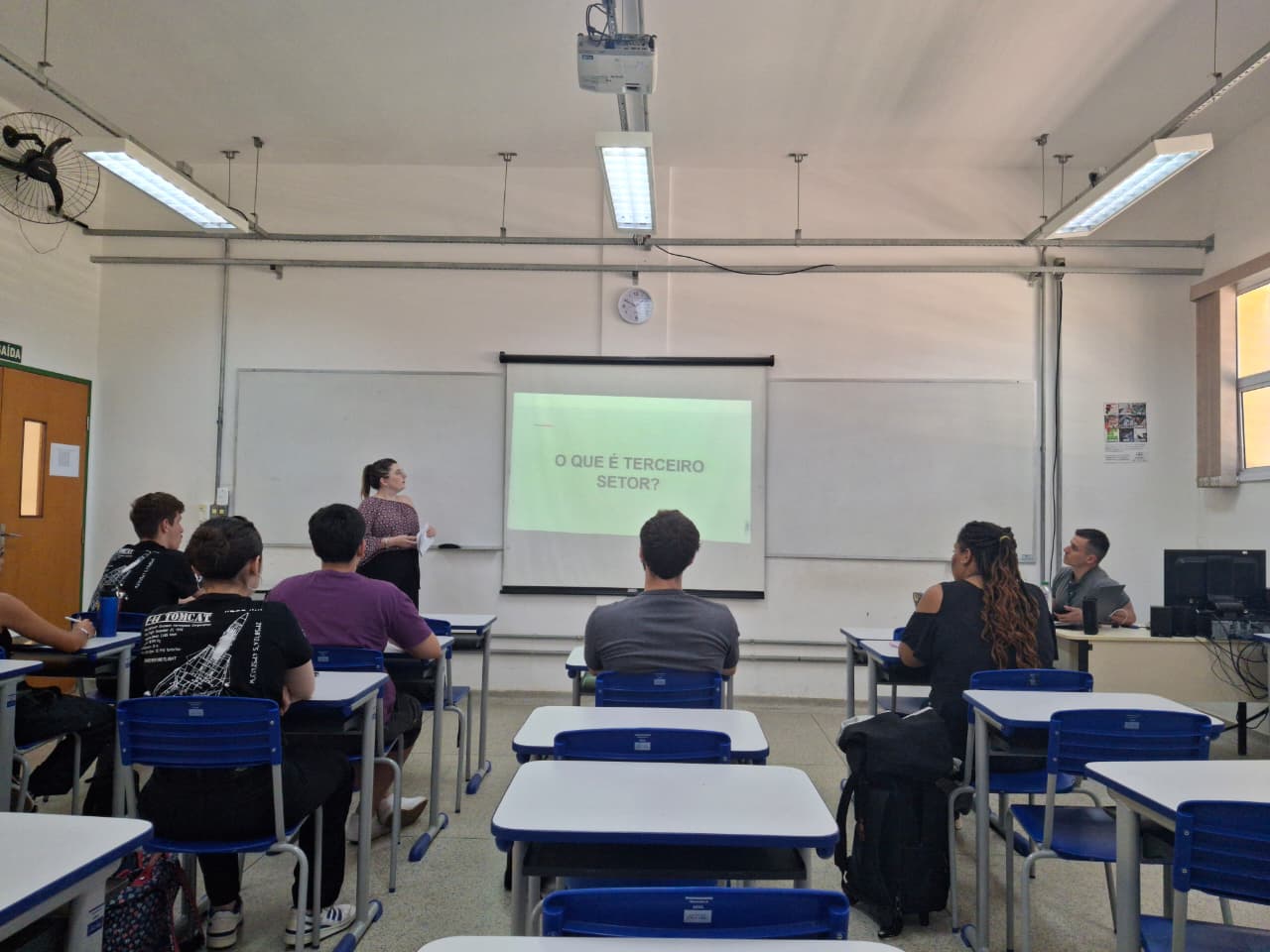 Na última quinta-feira, 18 de setembro de 2025, os alunos da disciplina Humanidades e Ciências Sociais (HCSE), do curso de Engenharia Aeronáutica do Instituto Federal de Educação, Ciência e Tecnologia de São Paulo (IFSP) – Campus São Carlos, participaram de uma palestra ministrada por Thaís Perazolo Bebber, bacharela em Administração Pública pela UNESP e atual diretora do Departamento de Convênios com o Terceiro Setor da Prefeitura Municipal de São Carlos. A atividade foi organizada pelo professor Dr. Roberto Ramon Mendonça (IFSP) e teve como tema “Desmistificando o Terceiro Setor: Atuação e Transformação Social”.